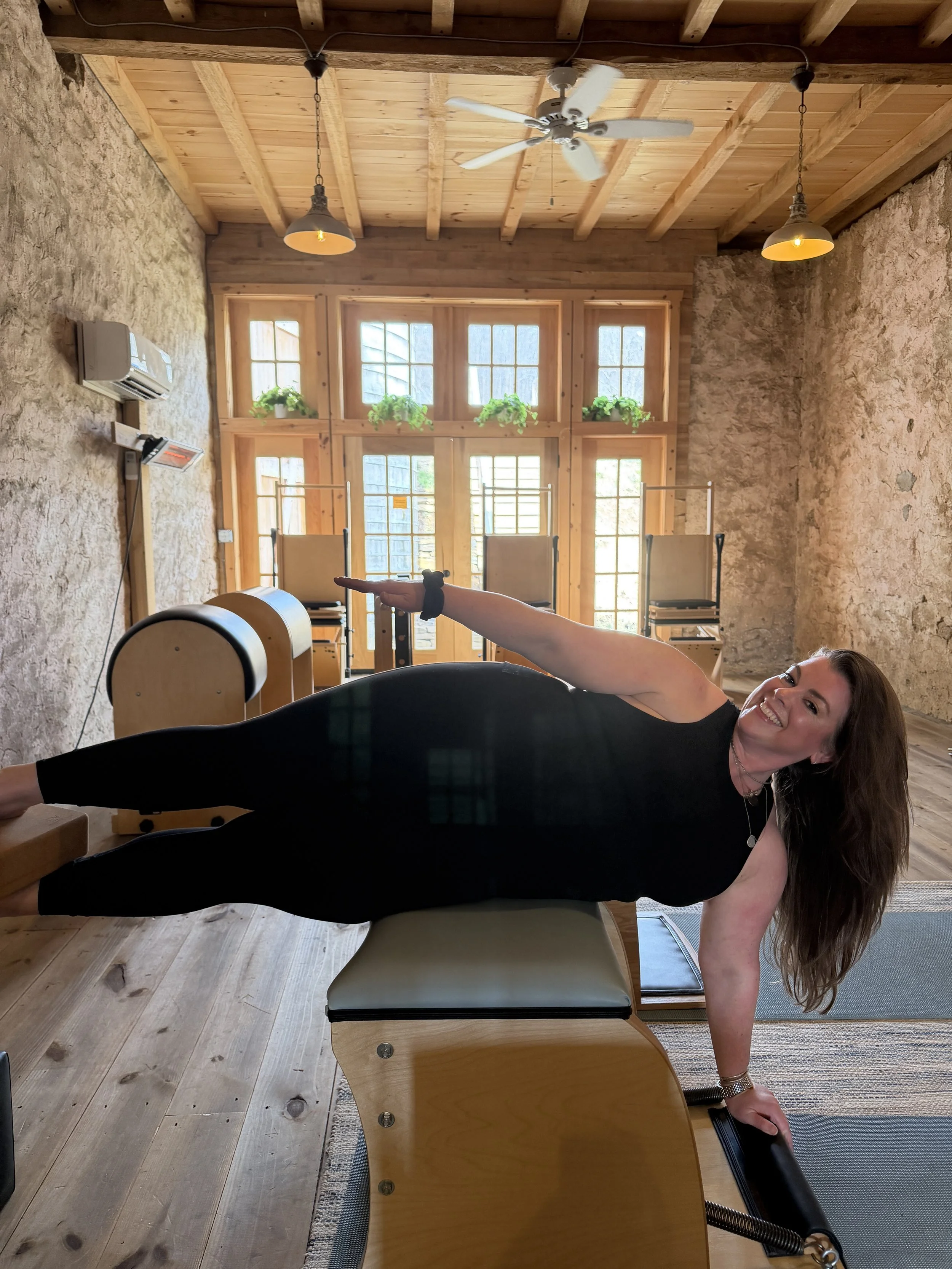 FAVORITE PILATES MOVE: Teaser Anywhere, Anyhow; Side Sit Ups on Ladder Barrel; Pulls Ups on Chair.