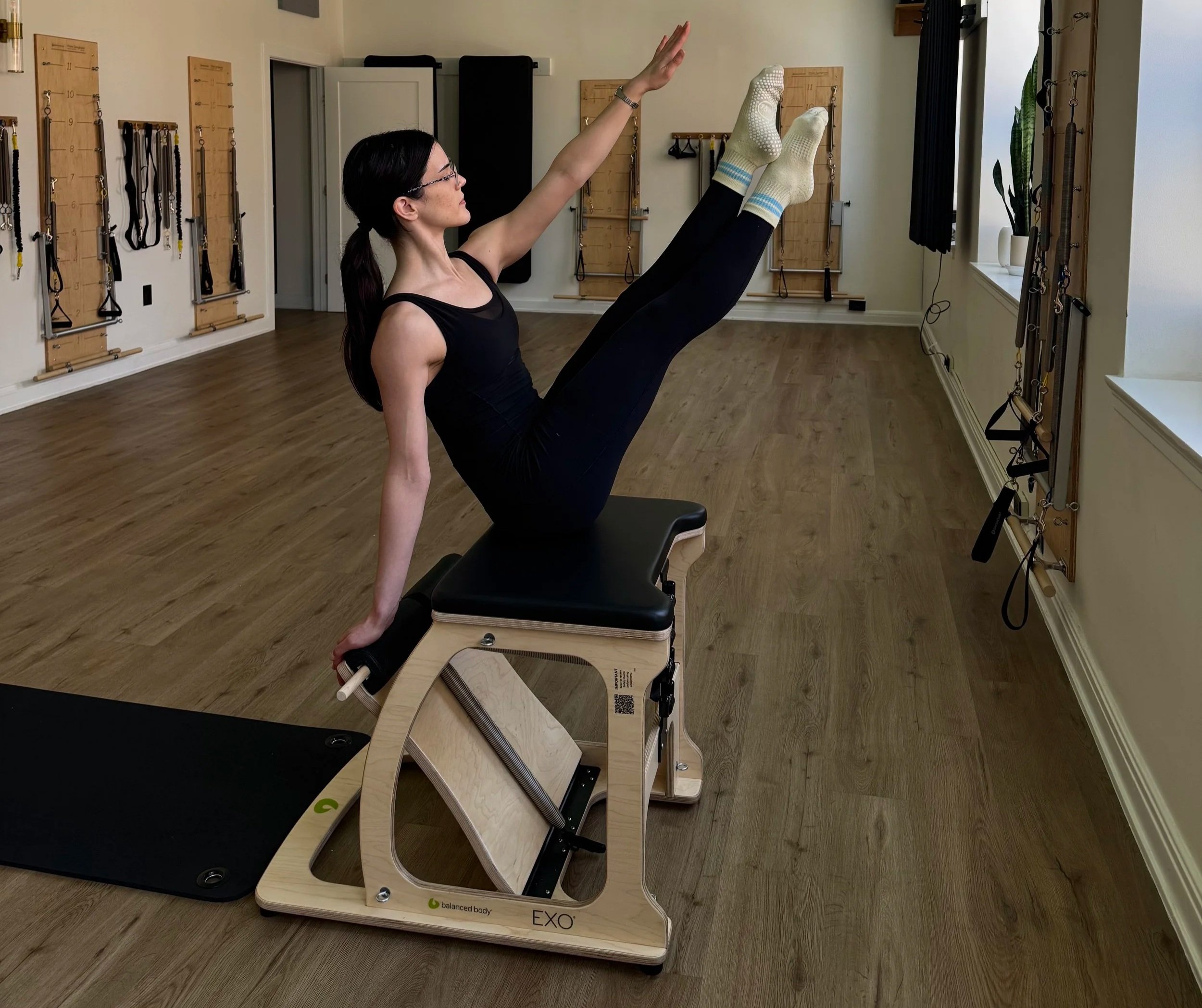 The Pilates Chair is a unique apparatus, allowing you to really focus on stability and balance work. The seated platform is much smaller than a Reformer or Mat, so you’re much more focused on engaging the core as you move through exercises on the Chair. Our Mat/Chair Fusion class will start off with some mat work to warm up, then move to the Chair with a heavier spring load, gradually lessening the springs and finishing with stretches on the Chair, and ending back on the Mat to cool down.